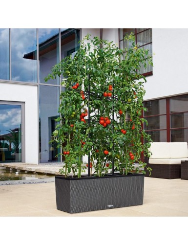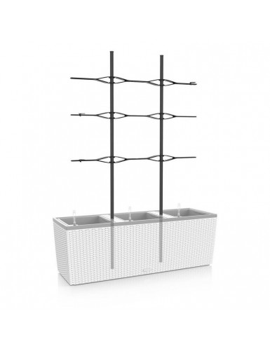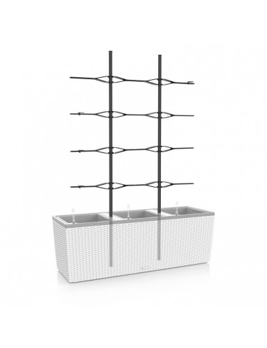 Sui tre tiranti trasversali in plastica regolabili possono essere fi ssate piante e ortaggi con le clips.