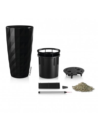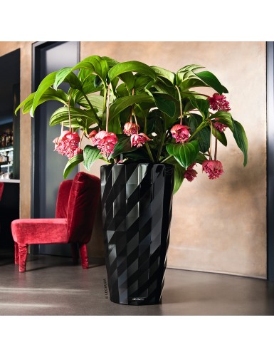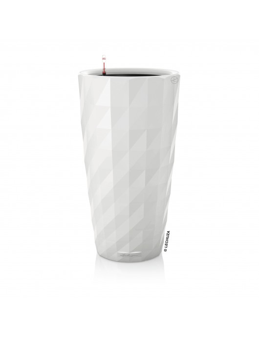 L'inserto intercambiabile con maniglia a scomparsa e funzione di troppo pieno, insieme al collaudato sistema di autoirrigazione LECHUZA, rendono DIAMANTE un vaso unico e versatile. DIAMANTE è un'affermazione di design, con la sua superficie tagliata a specchio e i suoi riflessi vibranti. Adatto all'uso in interni, DIAMANTE completa un'ampia gamma di concetti di interior design grazie alle sue diverse opzioni di colore. Il vaso a colonna alto 75 cm ha un diametro di 40 cm ed è disponibile nei colori nero, bianco e antracite lucidi.