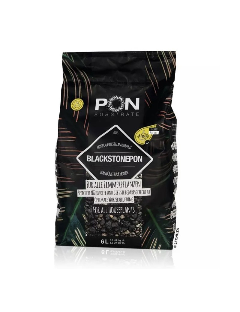 Il biochar in esso contenuto stimola la crescita delle radici. Poiché BLACKSTONEPON è pre-fertilizzato, le piante ricevono nutrienti per 6-8 mesi fin dall'inizio. Per il bene della natura, il substrato è privo di torba. Può essere utilizzato per tutte le piante d'appartamento, sia per la piantumazione completa che come strato decorativo.