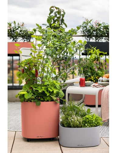 Grazie al sistema modulare, possono essere impilati fino a tre moduli uno sopra l'altro, garantendo più ordine e e un fresco verde. I moduli possono essere combinati a piacere nei diversi colori moderni e sono mobili grazie al supporto a rotelle.